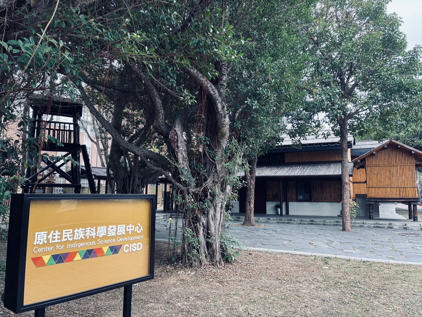4. The bamboo house built in the park in 2023 uses Guizhu locally sourced from Jianshi Township, Hsinchu County. It has one floor above ground and one underground floor. The first floor has an audio-visual space, offices and conference rooms that can accommodate 50 people, and the basement is a cultural display and teaching space. In order to comply with building and fire regulations, the inner layer is reinforced with steel and cement. It is the first indigenous bamboo building in the country that has obtained a construction and use license and can be used for teaching and office work.